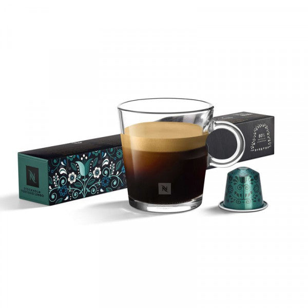 Stockholm Fortissio Lungo'yu latte olarak deneyin. Bu koyu renkli kahveye süt eklediğinizde tatlı bisküvi ve şekerleme notalarının nasıl yavaş yavaş kendini gösterdiğini tadın.